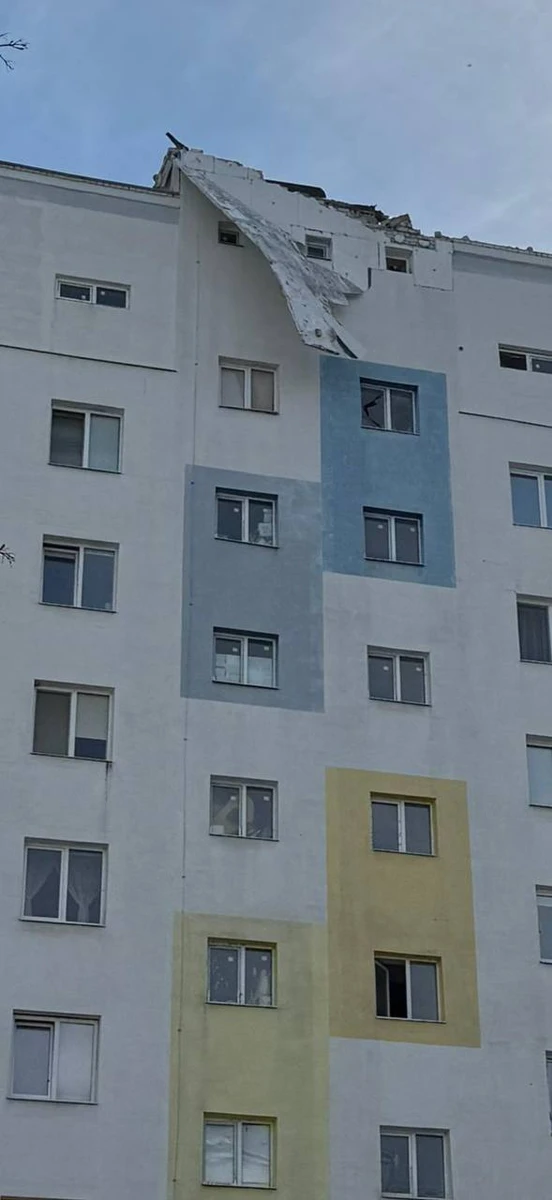 Также в районе было зафиксировано еще одно попадание вражеского дрона прямо возле многоэтажки.