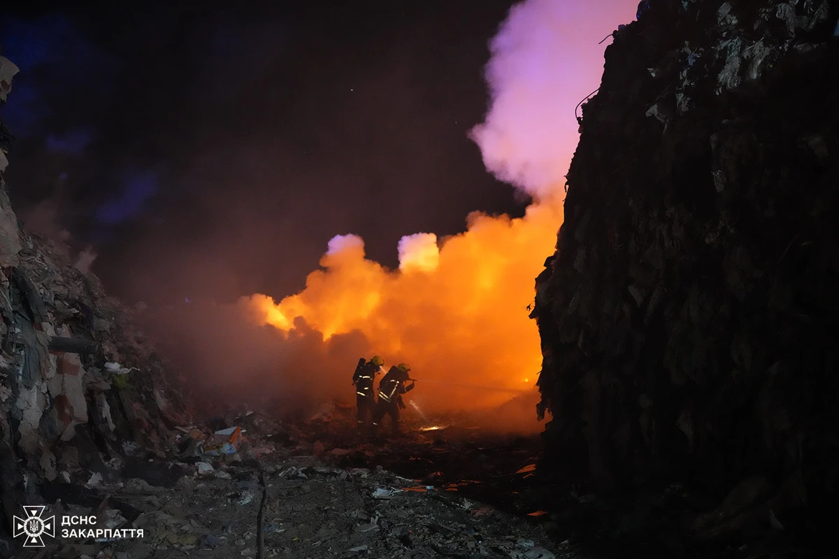 Продолжается ликвидация значительного пожара на полигоне бытовых отходов в селе Барвинок в Ужгородском районе на Закарпатье.