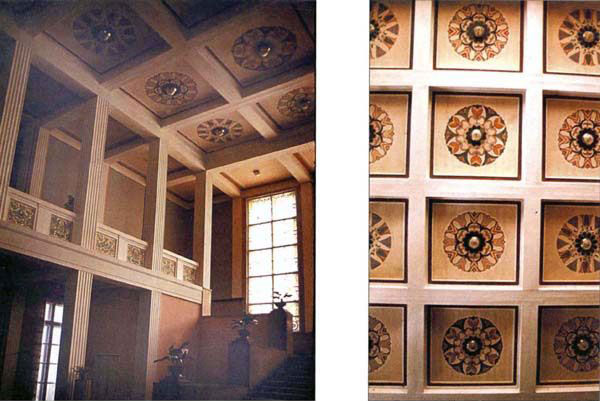 Господствующим цветом в музее стал серый. Стены - коричневого или темно-серого цвета, колонны в залах - также серые, а окна в фойе закрытые темно-серыми занавесками и репродукциями.