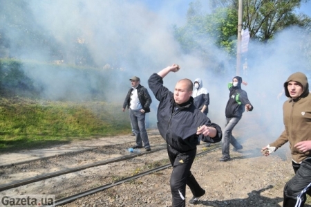 Сторонники "Свободы" забросали место, где происходила драка, дымовыми шашками.