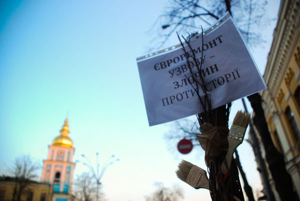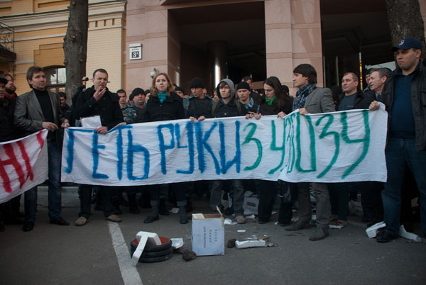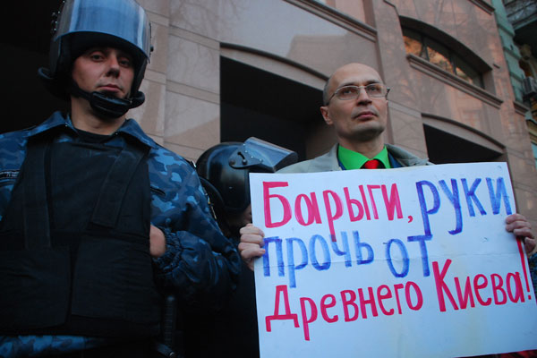 Акція відбулася на знак протесту проти забудови Андріївського узвозу компанією, що належить "регіоналу".