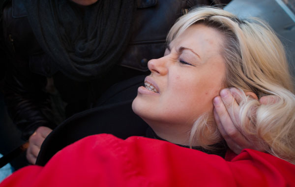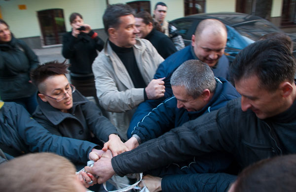 "Натовп людей намагався прорватися через кордон "Беркуту". Під час цього сталася сутичка. Один з працівників спецпідрозділу штовхнув на асфальт дівчину, після чого вона втратила свідомість", - повідомляв кореспондент "Української правди".