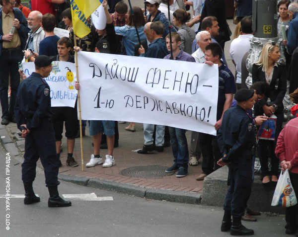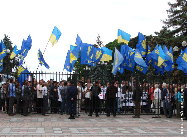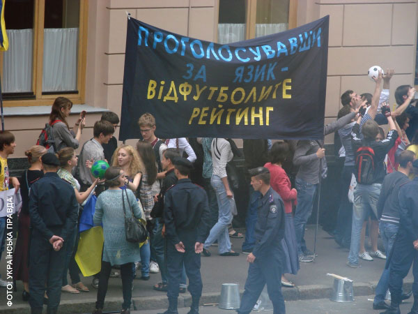 четвер біля Верховної Ради близько тисячі осіб протестували проти ухвалення закону "Про засади державної мовної політики".