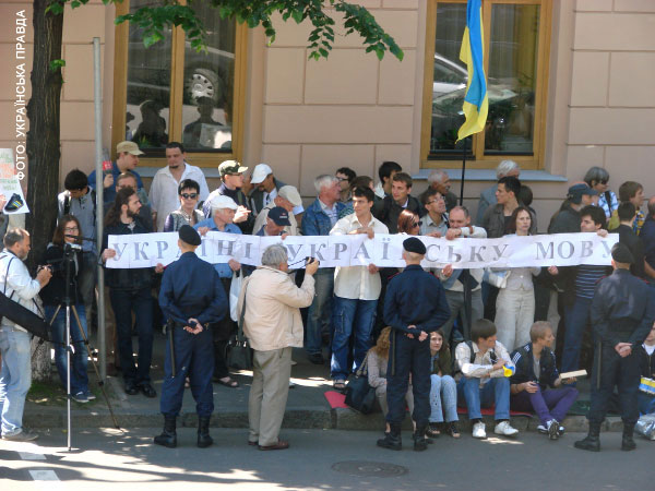 Понад 600 громадян провели мітинг проти ухвалення мовного законопроекту Ківалова-Колесніченка, поруч знаходилось 10 автобусів міліції та "Беркуту".