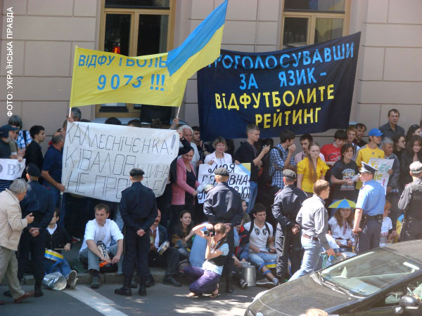 "Языковой" митинг: Депутатам устроили шоу с барабанами и вувузелами