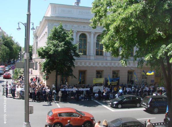 В пятницу под Верховной Радой продолжаются протесты против принятия языкового законопроекта