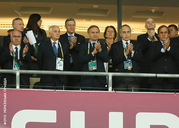 Разом з політиками у VIP-ложі був присутній зірка української збірної Андрій Шевченко, тренер українців Олег Блохін, президент УЄФА Мішель Платіні та інші.