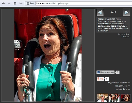 Депутат от Партии регионов Инна Богословская прокатилась на аттракционе в обновленном Центральном парке культуры и отдыха им. Максима Горького в Харькове.