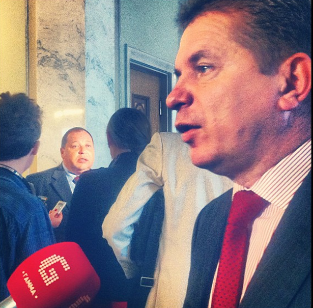 | Попит на коментарі у кулуарах є завжди. Позаду "регіонал" Забарський, на першому плані "регіонал" Смітюх |