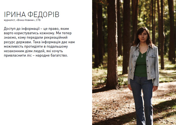 В фотопроекте снялись 22 журналиста из разных украинских медиа. Возле портрета содержится цитата – мысль журналиста относительно права на доступ к информации.