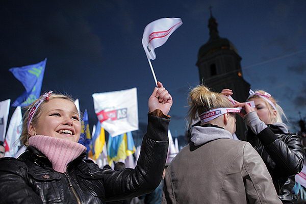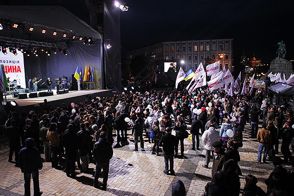600 человек митинговали в поддержку объединенной оппозиции на Софийской площади в Киеве, и около 1,5 тысяч человек на Михайловской площади за Партию регионов.
