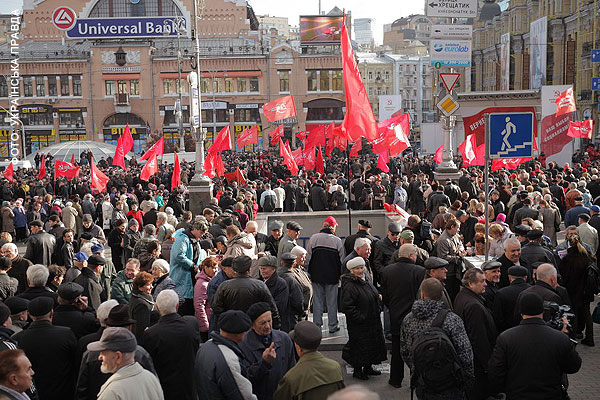 Во вторник коммунисты у памятника Ленину в Киеве провели митинг в честь 95-й годовщины Октябрьской революции.