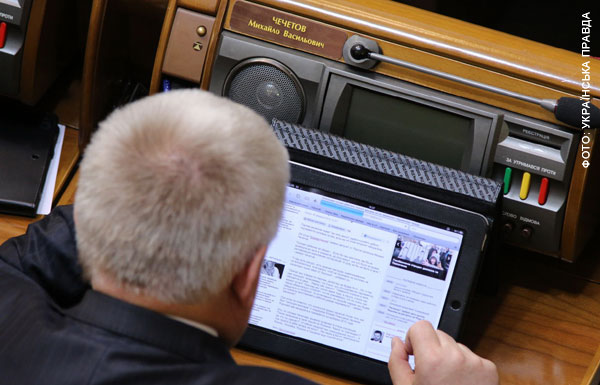 Депутаты из фракции "УДАР" в это время накинули на плечи Чечетова красный свитер с надписью "Голосуем лично". Это вызвало смех в сессионном зале, и депутаты начали аплодировать.
