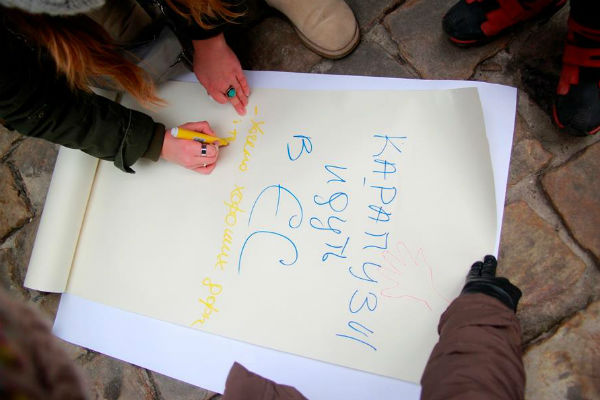 27 ноября во Львове прошла акция евромалюкив "Таможенный союз - какашка! Карапузы идут в ЕС".