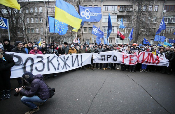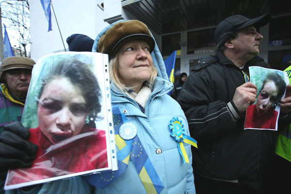 Активисты Евромайдана 25 декабря пикетировали здание Министерства внутренних дел с требованием скорейшего расследования избиения журналистки Татьяны Черновол.