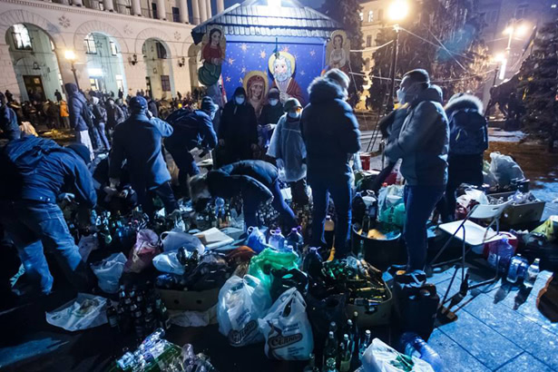 Временное затишье на Майдане Независимости: во время переговоров лидеров оппозиции с президентом Виктором Януковичем Майдан "активно отдыхает".