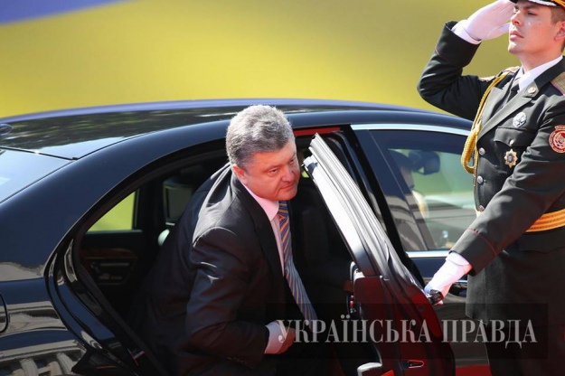 | На "Мерседес" Порошенко повесили президентский штандарт |