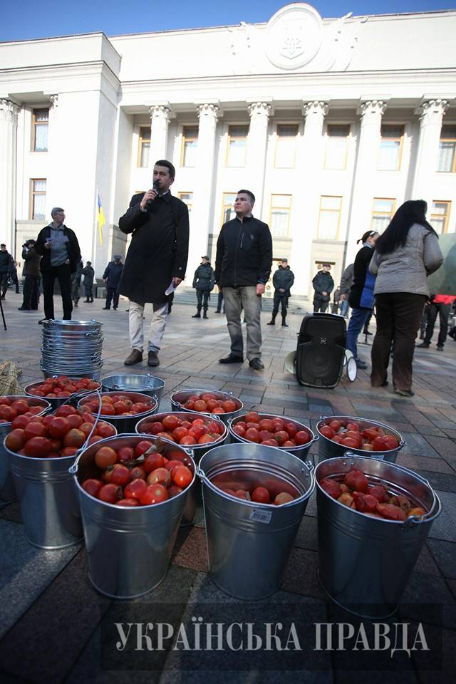 Активисты Майдана привезли в Верховную Раду 200 кг помидоров, предназначенных для народных депутатов, которые не будут голосовать за антикоррупционные законопроекты.