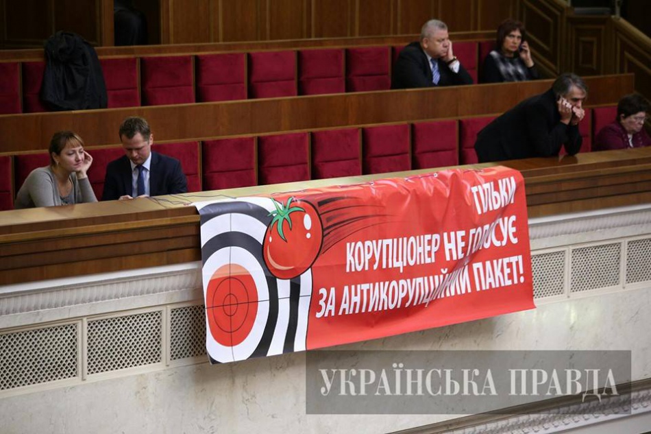 ВР готовится рассмотреть антикоррупционный пакет законов. Митингующие с помидорами ждут
